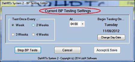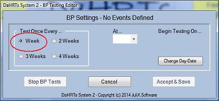 Reading from the left, the first option is the Frequency of testing (Once Weekly, Once per 2 Weeks etc). Simply click the Radio Button that corresponds to your choice.
