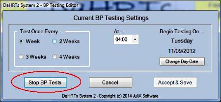 If at any time you wish to turn off the BP Testing option, just open the BP Dialog from the Edit Menu and click on the 'Stop BP Tests' Button